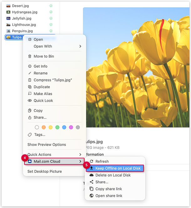 If you would like to access files and folders in your mail.com Cloud without an internet connection, you can store them offline on your hard drive.