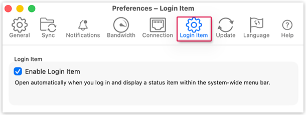 to open the mail.com Cloud for Mac application automatically on start-up or login.