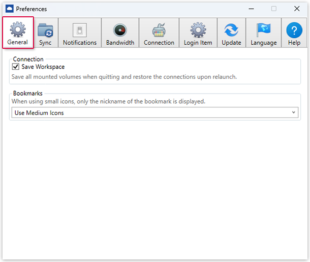 " to save all mounted volumes when quitting and restore the connections upon relaunch.