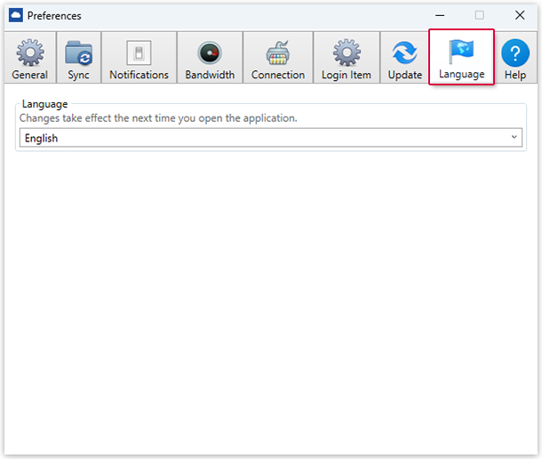 Choose the language in which mail.com Cloud for Windows is being displayed.