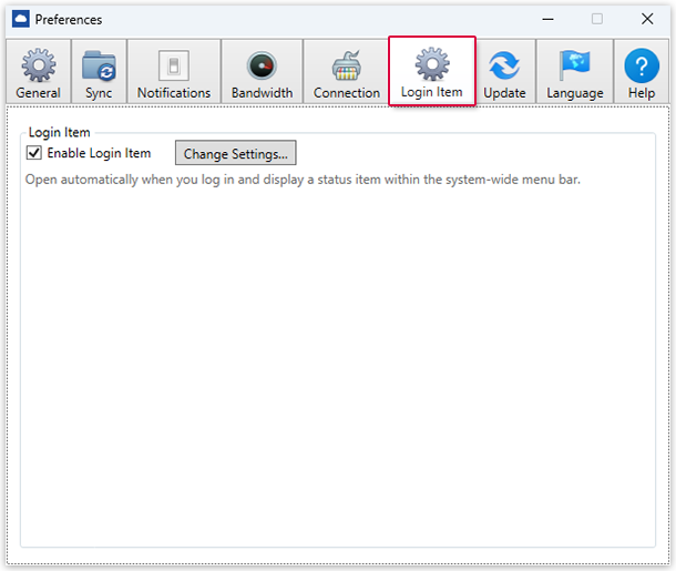 The following settings can be made under "Login Item":